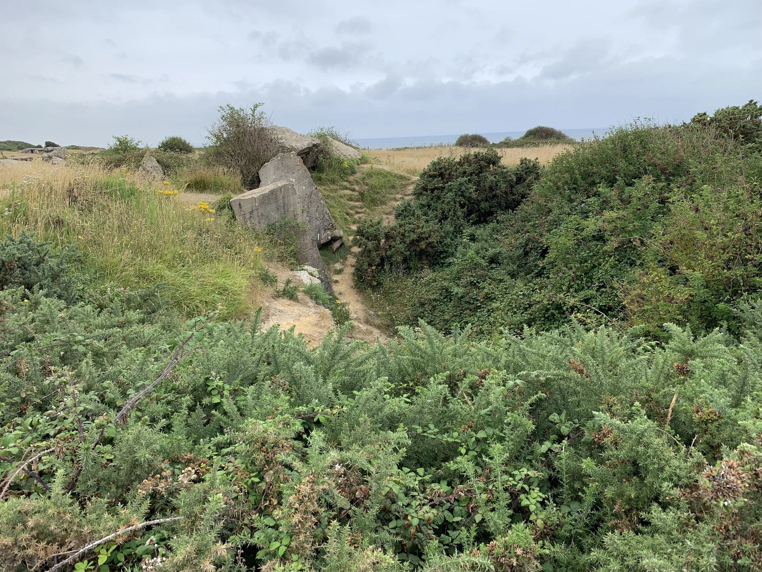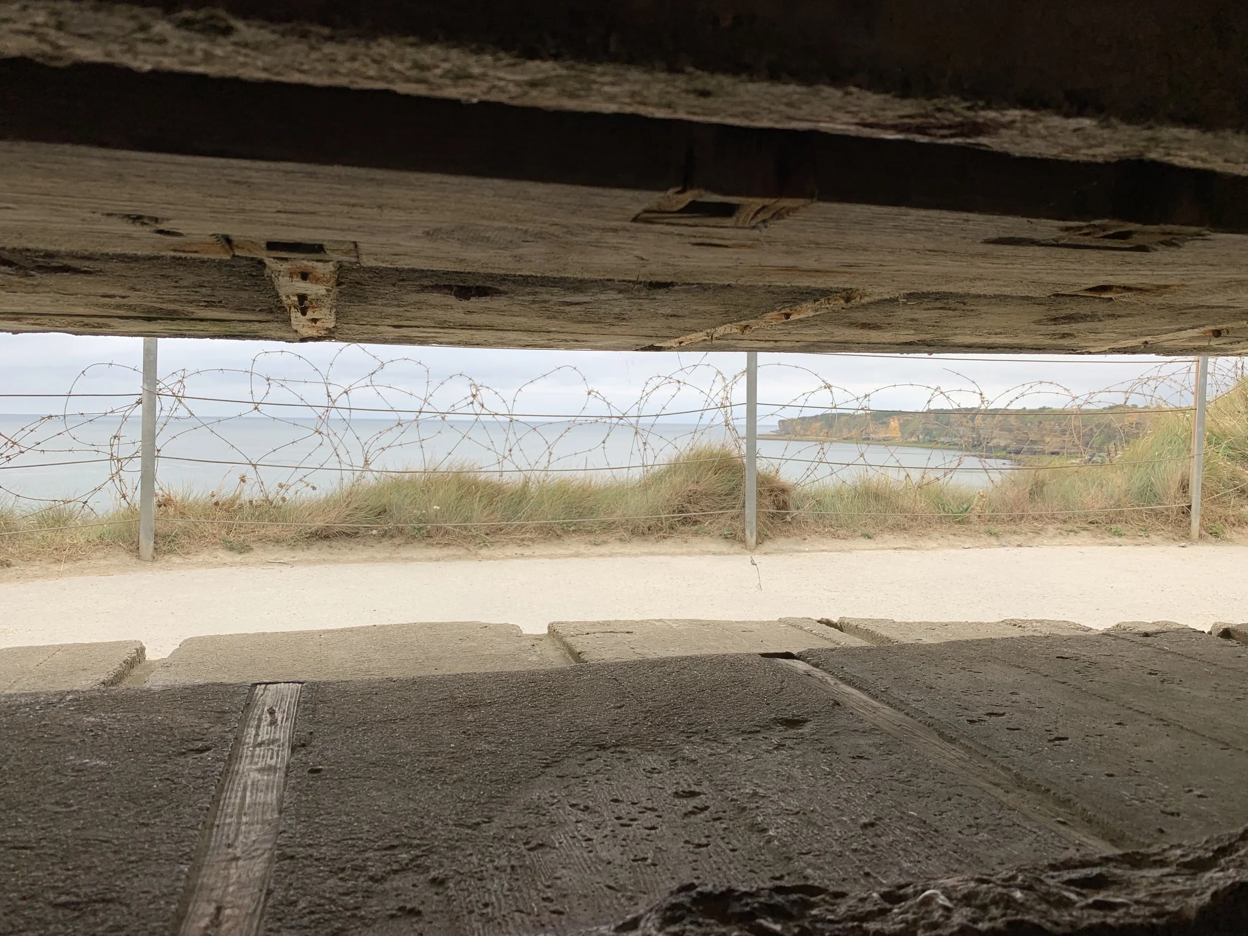 Looking out of the Observation Bunker (English Channel in front and the cliffs on the western side of Pointe-du-Hoc on the right).