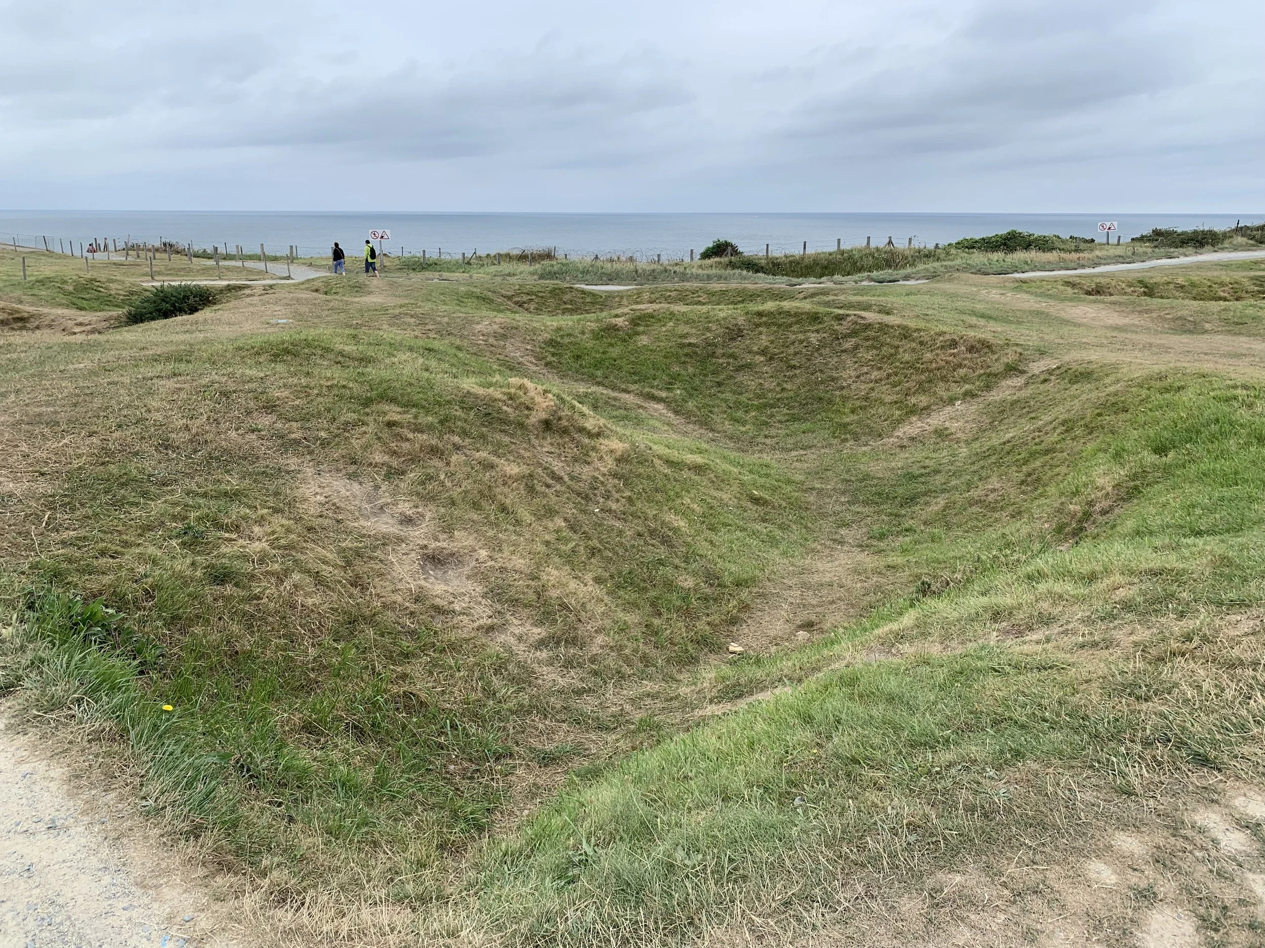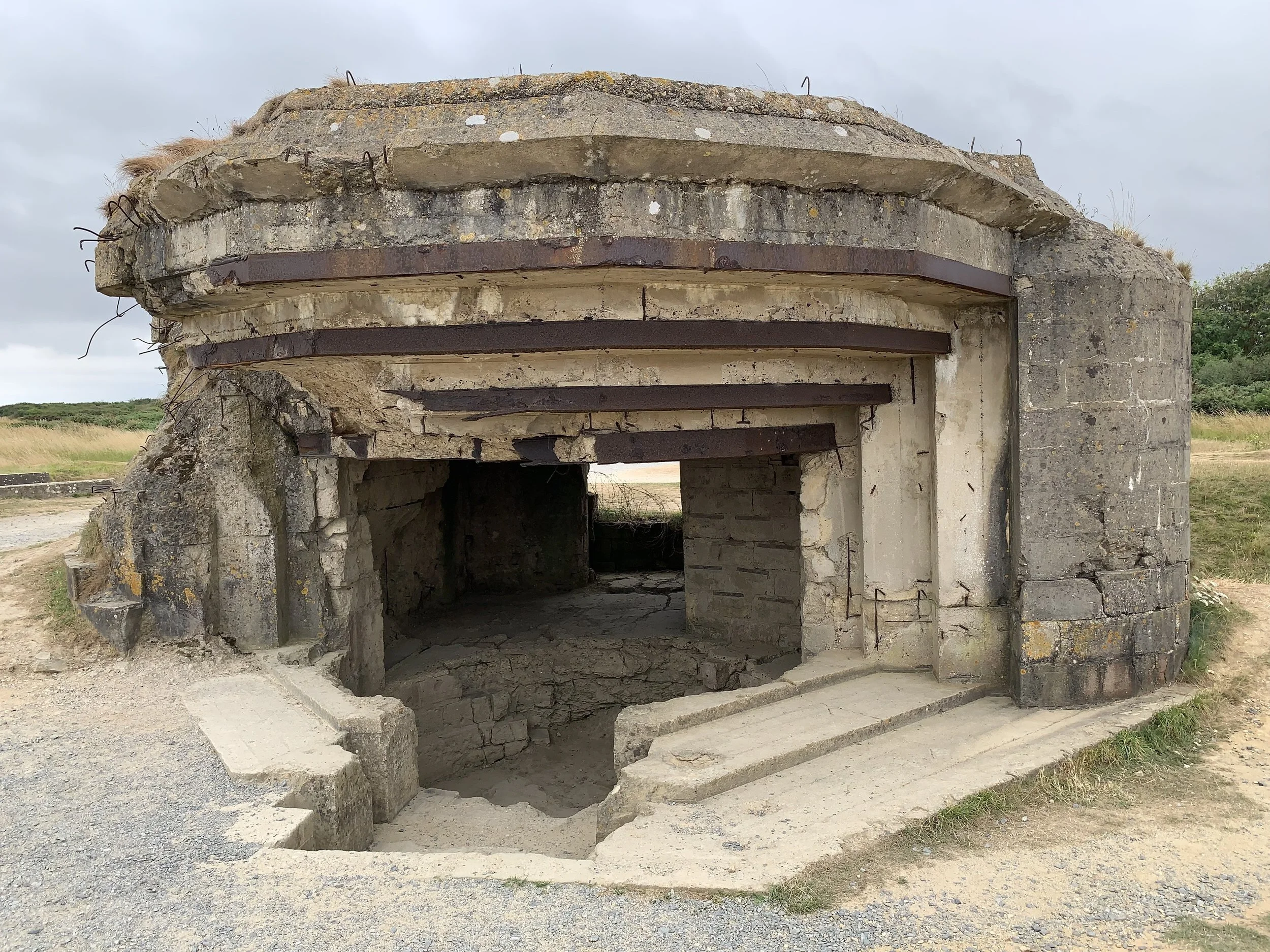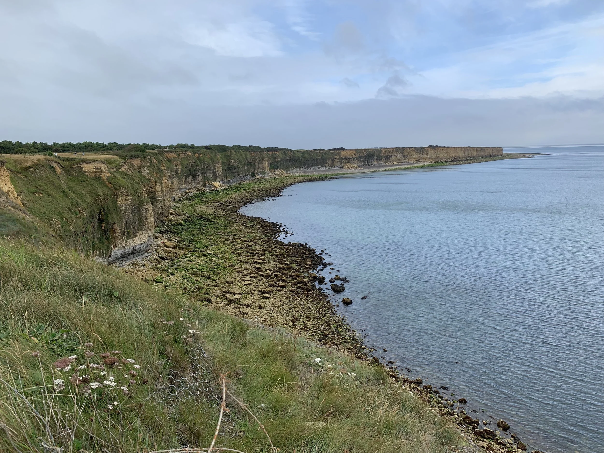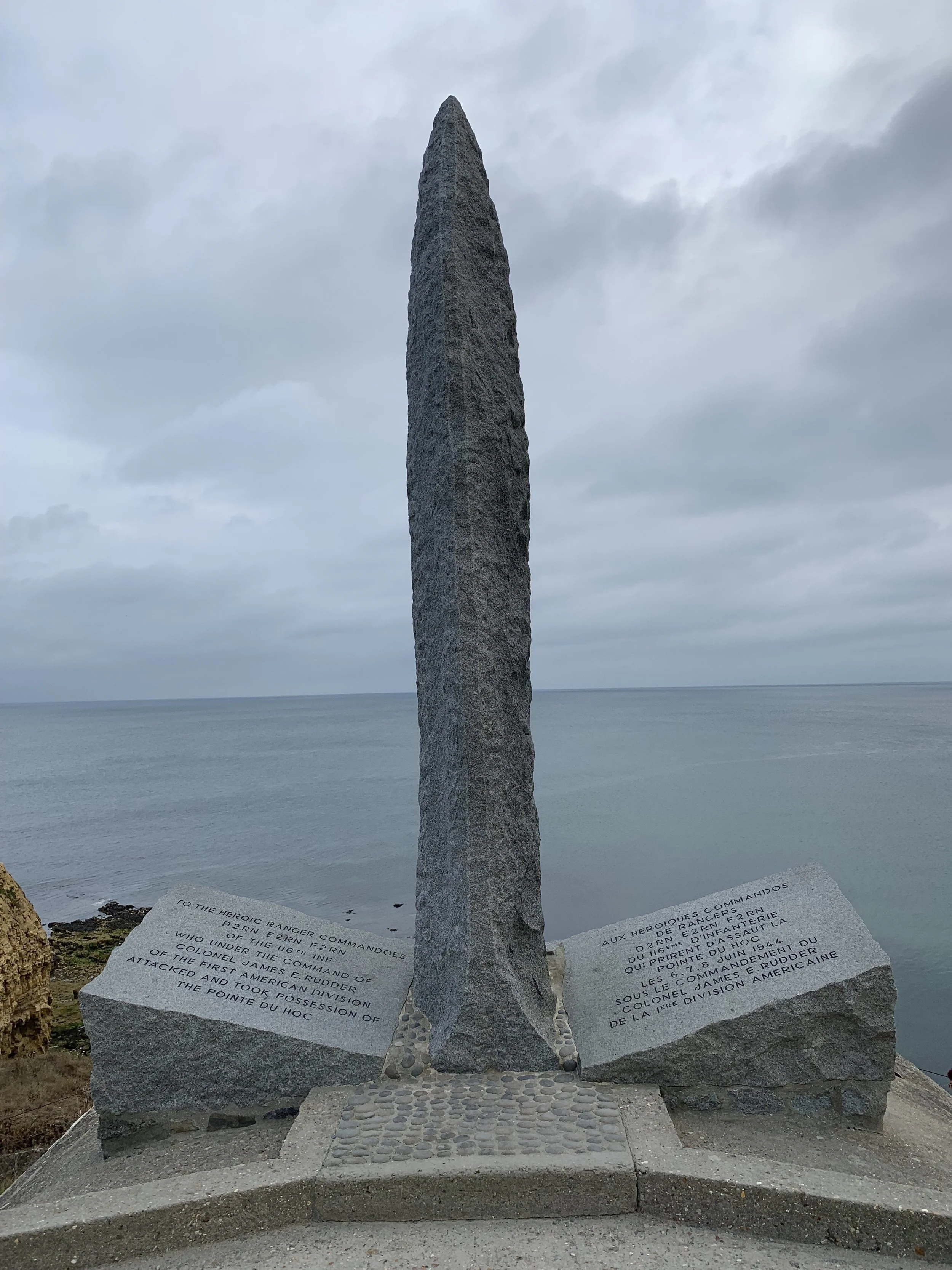 Our first stop was Pointe-du-Hoc on the eastern end of the D-Day Beaches. This was an important site to the allies as the gun batteries there, had the range to cover the Omaha and Utah Beach landing sites. Troops from the 2nd and 5th US Ranger Battalions were tasked to scale the cliffs and capture the gun batteries. It was up to allied ships including the battleship USS Texas to provide support by bombarding the area as the landing occurred.