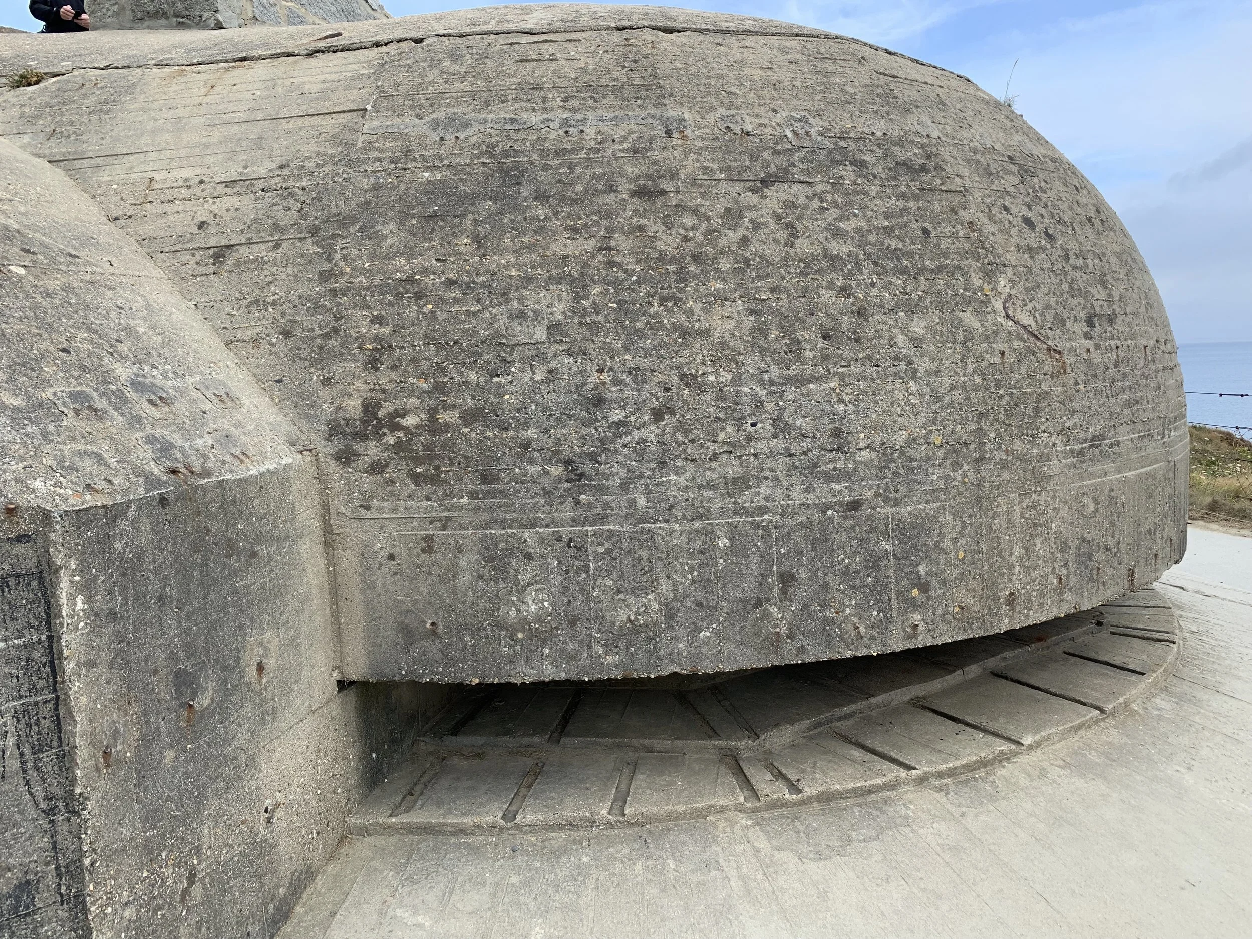 A month before D-Day, an aerial bombardment of Pointe-du-Hoc took place. As a result, the Germans considered their guns to be in danger and could be better used elsewhere. The guns were removed and large wooden poles were put in their place to give the appearance (from the air) that they were still there.