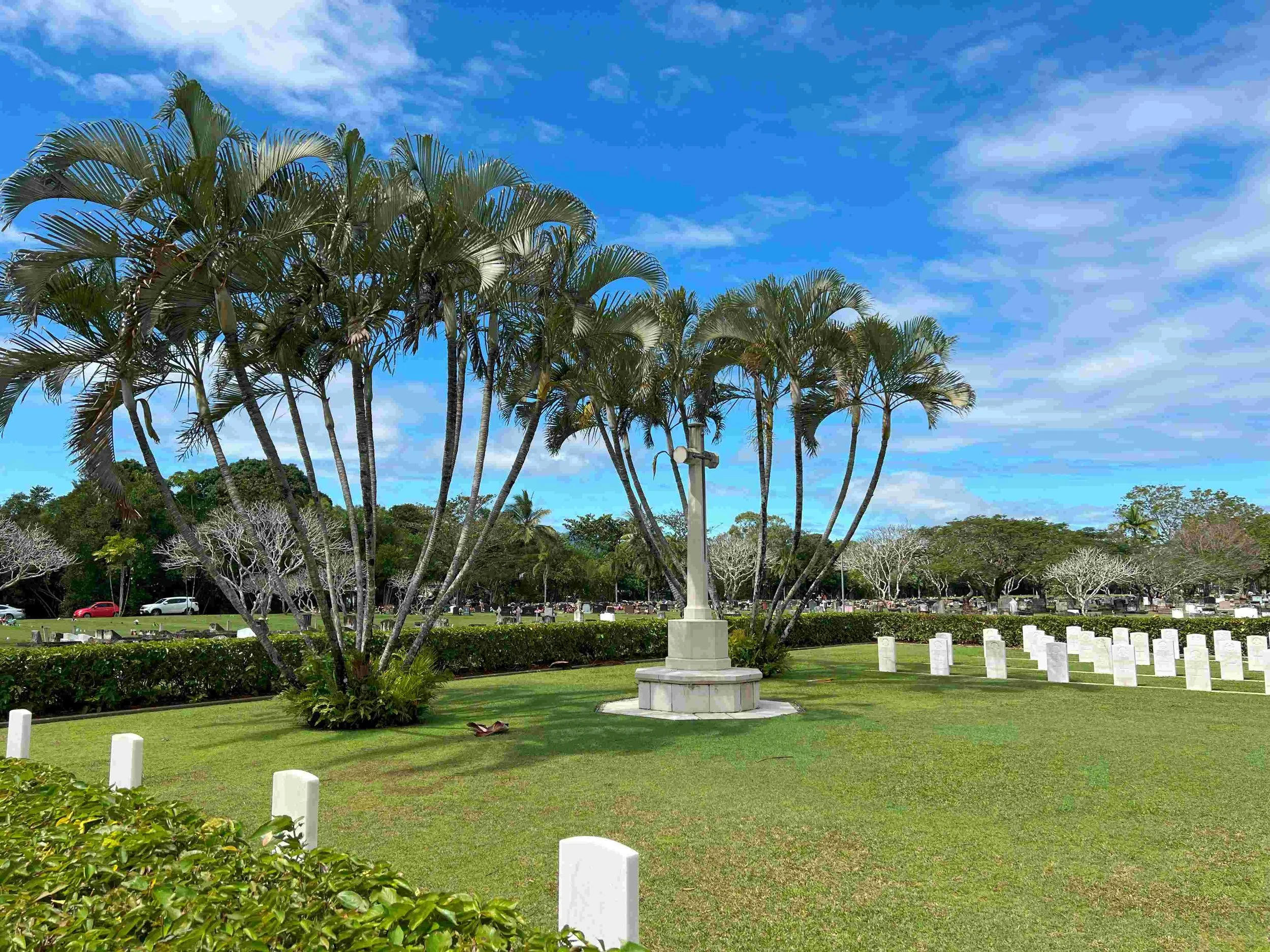 The Cairns War Cemetery, part of a larger cemetery in Manunda, was created during WWII and is the final resting place for 119 service personnel. To the casual observer, it is a small cemetery like most other cemeteries. But on closer look, you will note the names of two major generals and other high ranking military staff, all with the same date of death - the 5th March 1945.